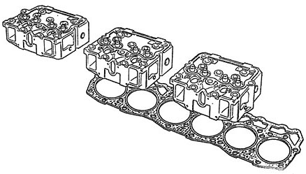 Trzyczęściowa głowica dużego silnika sześciocylindrowego