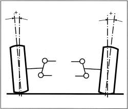 Ustawienie koła pojazdu względem pionu. Przednie koła mają zwykle kąt pochylenia dodatni (górna część koła wychylona na zewnątrz), co poprawia prowadzenie pojazdu przy jeździe na wprost. Tylne koła samochodów wyścigowych i sportowych mają często kąt pochylenia ujemny. Powoduje to mniejsze znoszenie na zakrętach.
