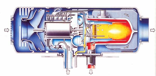 Zespół urządzeń utrzymujących optymalną temperaturę wnętrza pojazdu w chłodnych warunkach klimatycznych. Może wykorzystywać ciepło z układu chłodzenia silnika za pośrednictwem wymienników (nagrzewnic) i dmuchaw albo z niezależnych palników zasilanych paliwem samochodowym. Niezależne systemy ogrzewania działają także podczas postoju i dają się uruchamiać w wyznaczonych porach automatycznymi programatorami.