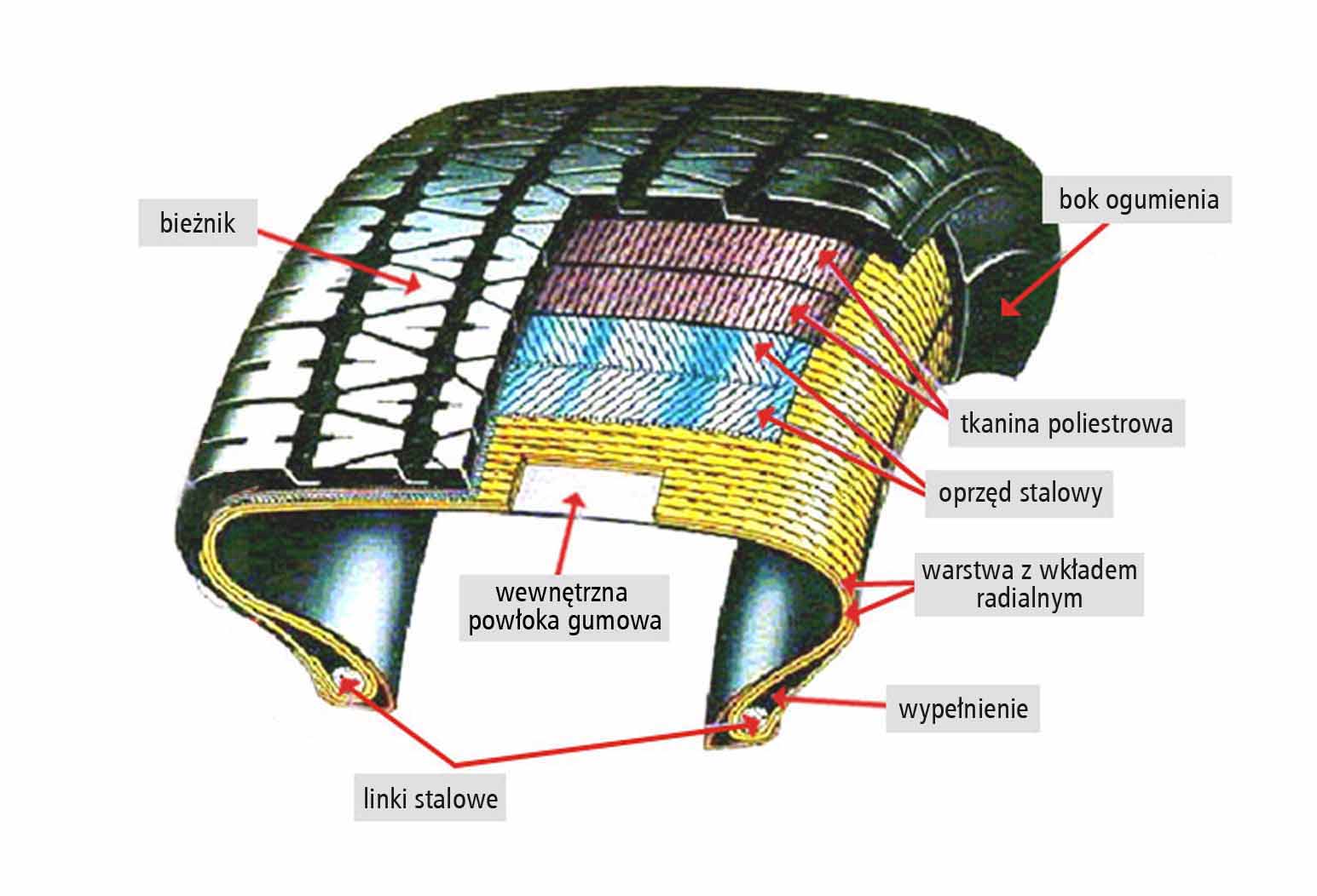 Wewnętrzne wzmocnienie opony zatopionym w gumie oprzędem z włókien tekstylnych, nylonowych lub stalowych.