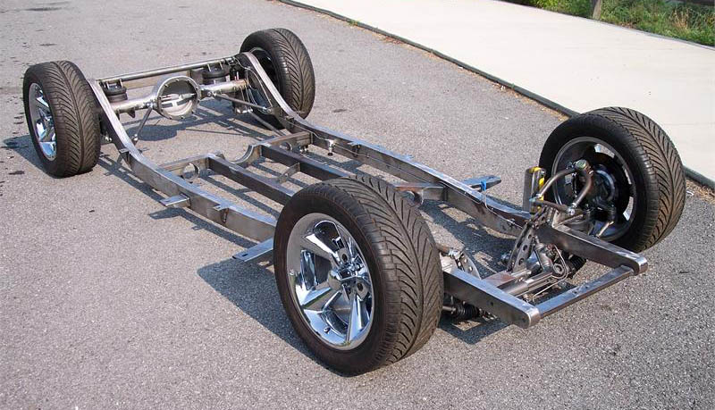 Umownie wyodrębniona dolna część pojazdu, obejmująca zawieszenia, a także dolne elementy układów: kierowniczego i napędowego oraz ramę lub płytę podłogową nadwozia samonośnego.