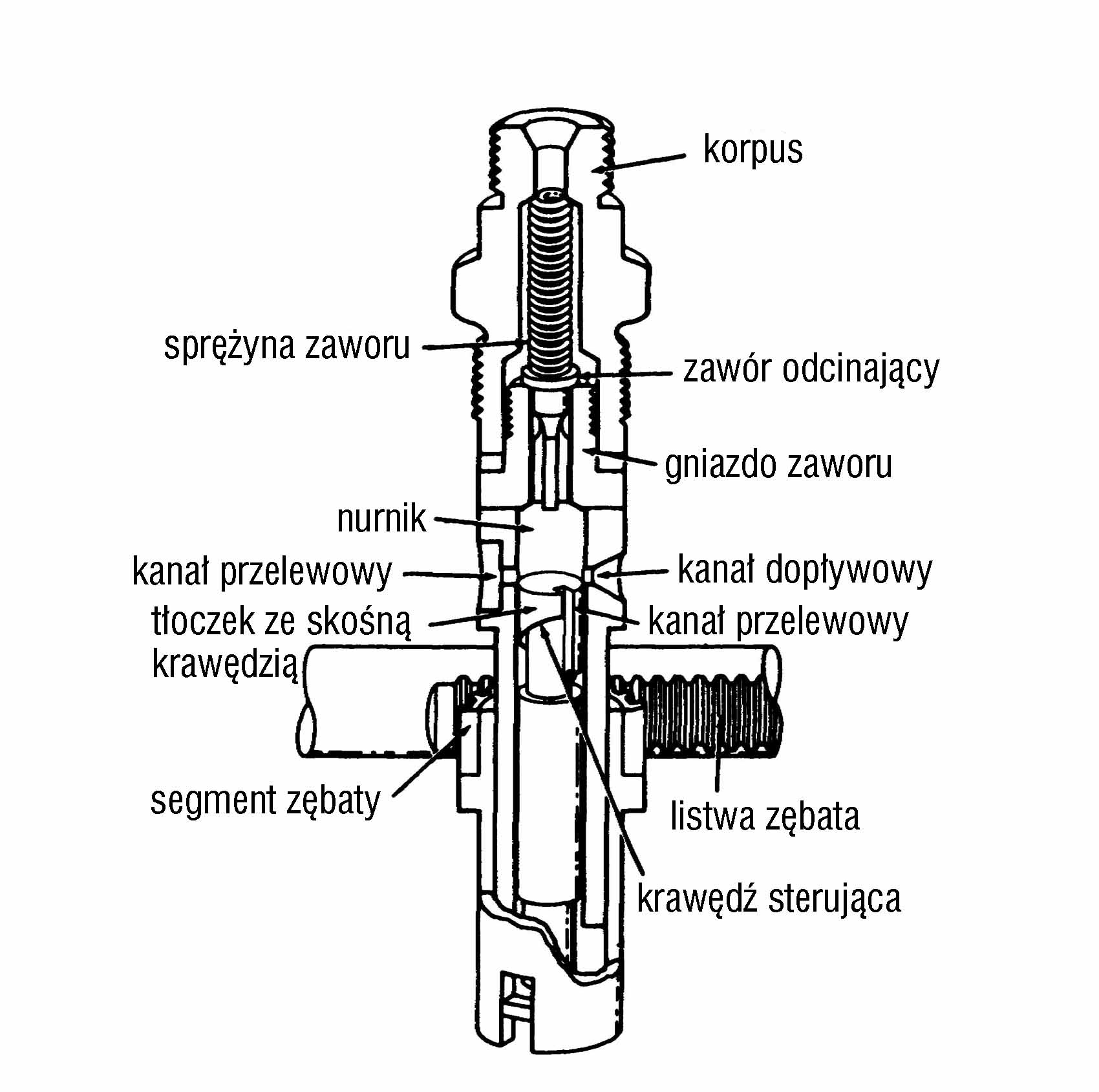 Szeregowa pompa wtryskowa - przekrój sekcji tłoczącej