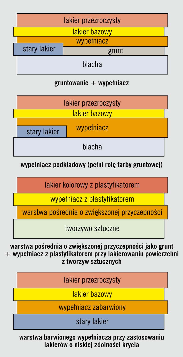 Ochronno-ozdobne pokrycie nadwozia o grubości od 0,15-0,2 mm, złożone zwykle z antykorozyjnej warstwy gruntującej (podkładu), wypełniacza, lakieru bazowego i bezbarwnego nawierzchniowego.