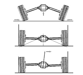 Konstrukcja tylnej napędzanej osi pojazdu ze sztywno mocowanym do podwozia mechanizmem różnicowym.