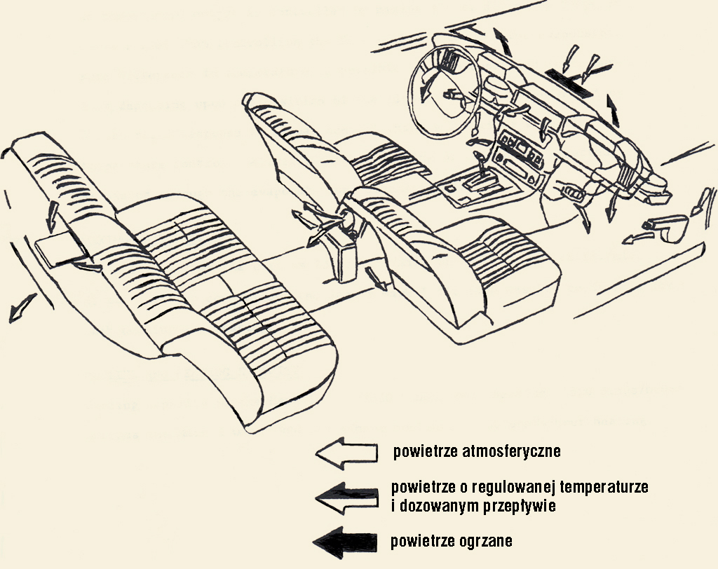 System kanałów, przepustnic, dmuchaw i specjalnych filtrów kabinowych, regulujący wymianę powietrza w kabinie samochodu.