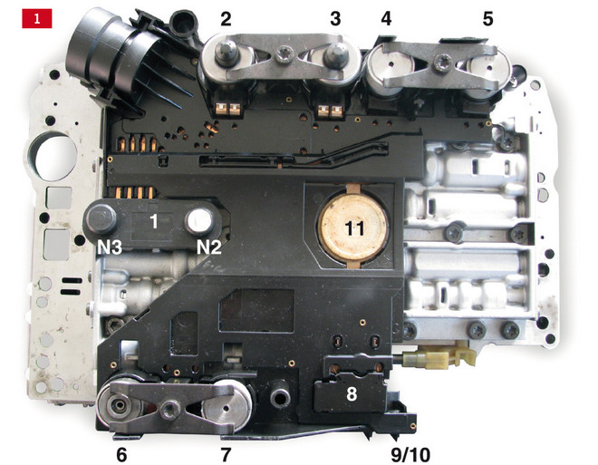 Płytka sterownika połączona jest z zewnętrzną częścią skrzyni biegów za pomocą tulejki prowadzącej, która na płytce i na obudowie skrzyni uszczelniona jest o-ringami. W wyniku uszkodzenia tych o-ringów olej może przedostać się do korka zamykającego. Natomiast opiłki metalu krążące w oleju ATF mogą powodować spięcia elektryczne.