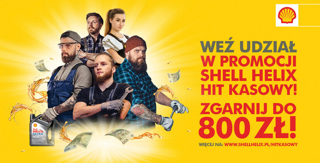 Pod hasłem Hit Kasowy wystartowała ogólnopolska promocja olejów silnikowych Shell Helix skierowana do niezależnych warsztatów samochodowych. Do zdobycia jest premia gotówkowa o łącznej wysokoścido 800 złotych. Promocja potrwa do 13 grudnia 2019 roku.