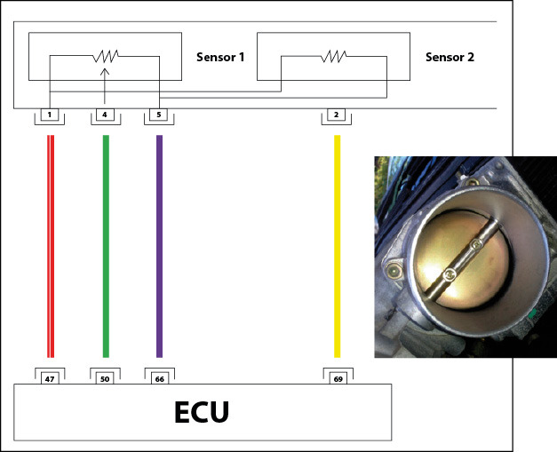 Znając zasadę pracy układu, można zwizualizować na wykresie pochodzące z modułu silnika ECU dane dotyczące czujnika położenia przepustnicy oraz pedału przyspieszenia. W tym celu należy włączyć zapłon, a silnik podczas testu nie może pracować. Ze względu na specyfikę Nissana (samochód posiada również przełącznik biegu luzem), należy wybrać pierwszy bieg. W przeciwnym razie nie da się odczytać danych z czujnika położenia przepustnicy.