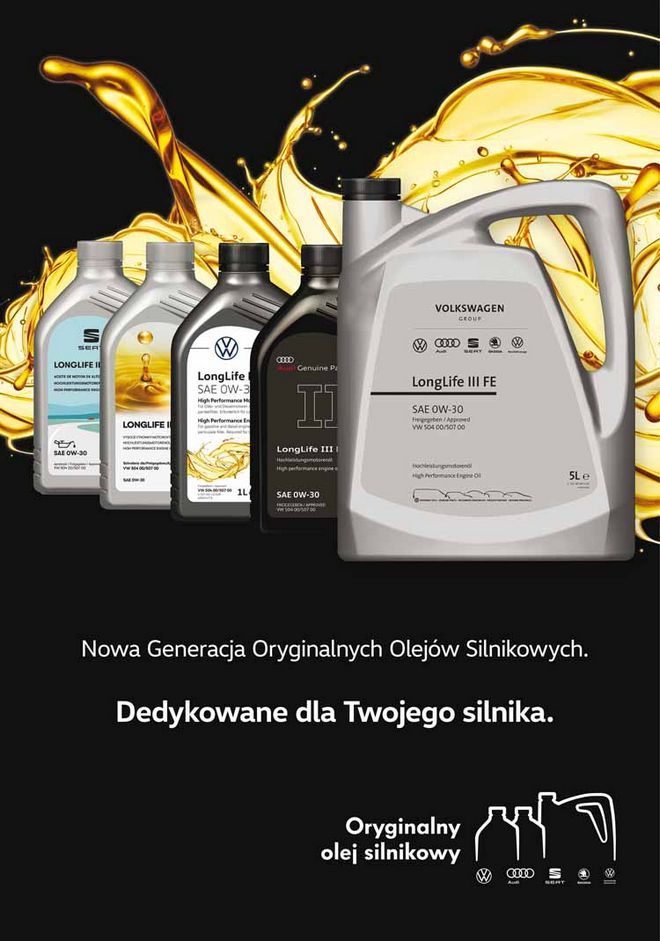 Nowy oryginalny olej grupy Volkswagen 0W-30 Longlife III FE spełniający normę Volkswagen 504.00/507.00 to odpowiedź na nowe trendy w motoryzacji. Dostępny w całej Autoryzowanej Sieci Serwisów Grupy Volkswagen w Polsce.