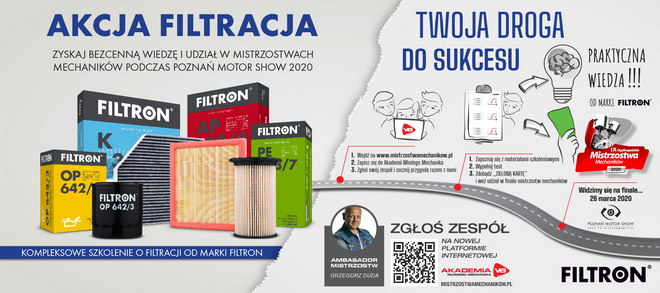 Aby wziąć udział w „Akcji Filtracja” należy zarejestrować się w konkursie i odbierać materiały dotyczące filtrów marki Filtron. Pozwoli to pogłębić wiedzę na temat procesów filtracji w pojazdach samochodowych. Na stronie internetowej marki uruchomiona zostanie też Akademia Młodego Mechanika.