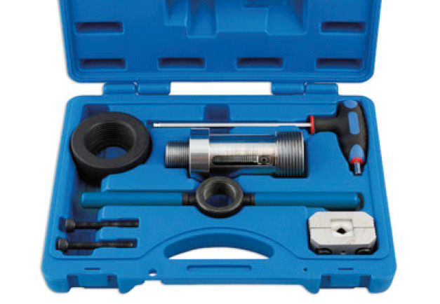Gdy wewnętrzna bieżnia łożyska pozostaje na zwrotnicy, pomocnym okaże sie zestaw GO 020, dysponujący rozwiązaniem, które pozwala na łatwe wyciśnięcie bieżni bez uszkadzania zwrotnicy.