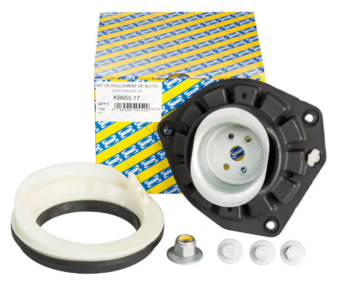 Dostarczane przez firmę NTN-SNR łożyska są kompletne i zawierają wszystkie potrzebne do montażu elementy. Poza łożyskiem i poduszką gumową są to – zależnie od typu pojazdu – nakrętki, podkładki, miseczki itp. Przy wymianie należy wymienić wszystkie te elementy, nie pozostawiając żadnych starych części. Ważna jest też kolejność montażu oraz w przypadku np. miseczek – także strona, którą je zakładamy. Zwracamy też uwagę na właściwe ułożenie sprężyny w gniazdach, aby nie powstawały w niej szkodliwe naprężenia wywołujące trudne do lokalizacji dźwięki i przedwczesne uszkodzenie zamontowanych części.