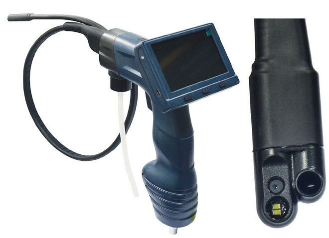Kamera inspekcyjna wyposażona jest w duży i czytelny ekran, umożliwiający robienie filmów i zdjęć, co pozwala udokumentować jakość wykonanej usługi. Sonda ma długość 80 cm z dyszą rozpylającą oraz kamerą i diodami oświetleniowymi. Kamera i diody osłonięte są przed bezpośrednim działaniem czynnika z dyszy. Sonda jest wodoodporna (IP 67), olejoodporna oraz zabezpieczona osłoną gumową przed brudem i chemią. Do kamery podłączany jest przewód pneumatyczny ze sprężonym powietrzem o ciśnieniu 6-8 barów. Zbiornik na chemię czyszczącą ma pojemność 250 ml i podłączany jest od dołu. Długa sonda pozwala na penetrację przewodów wentylacyjnych i dotarcie bezpośrednio do parownika, po wcześniejszym zdemontowaniu wentylatora i filtra pyłowego. Czyszczenie parownika odbywa się za pomocą prostopadłej dyszy podającej czynnik pod wysokim ciśnieniem. Dzięki temu zanieczyszczenia nie tylko giną, ale są również wypłukiwane. Takiej możliwości nie dają tradycyjne spraye do czyszczenia klimatyzacji.