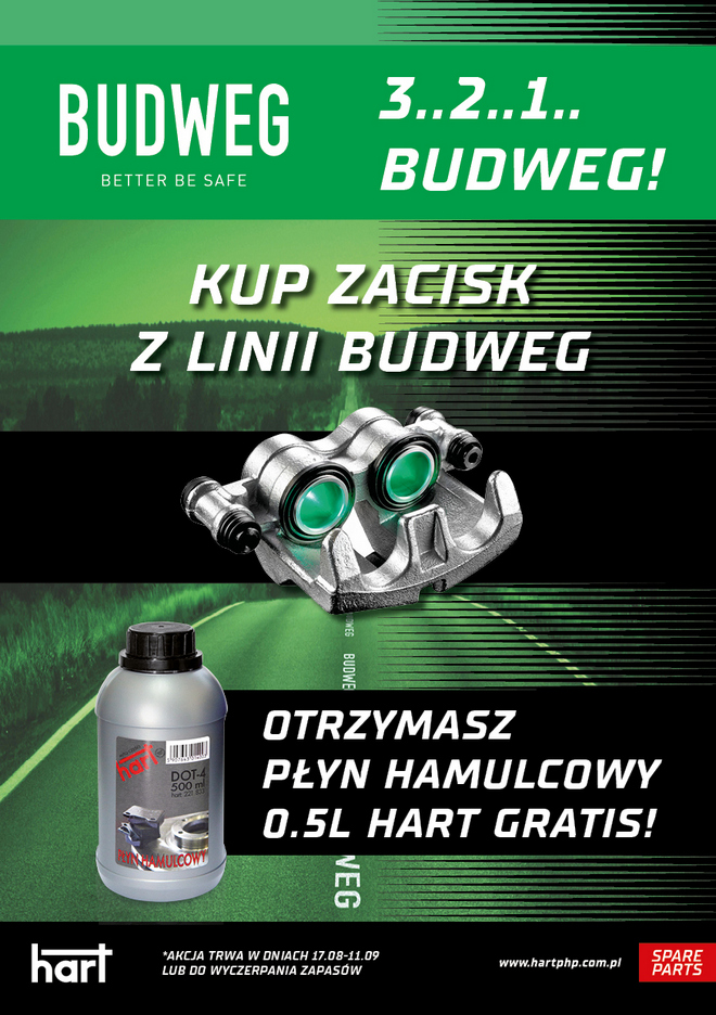 Kupując zacisk Budweg Caliper można otrzymać półlitrowe opakowanie z płynem hamulcowym marki Hart. Akcja będzie trwała do 11 września lub wyczerpania zapasów.
