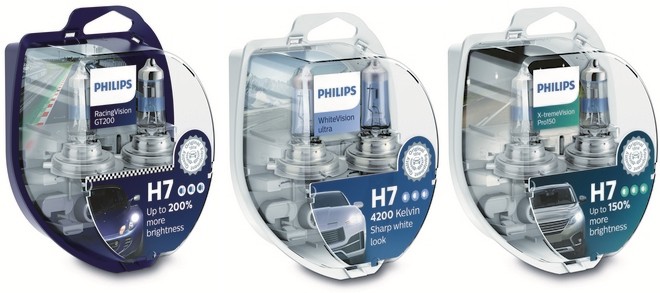 Nowe żarówki Philips WhiteVision ultra są dostępne w wersjach H1, H3, H11, HB3, HB4, HIR2 oraz PSX24W, W5W i H6W), X-tremeVision Pro150 w wersjach H1, H11, HB3, HB4, HIR2 i W5W), a RacingVision GT200 w wersjach H4 i H7.