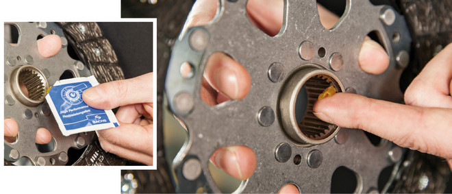 Przestrzeganie zaleceń dotyczących smarowania poszczególnych elementów sprzęgła jest kluczowe dla ich sprawnego działania. W przeciwnym razie przedwczesnemu zużyciu może ulec tuleja prowadząca (zwana również prowadnicą rurową) oraz tulejka przesuwna wysprzęglika. Obecnie sprzęgła składają się z elementów, które zwykle nie wymagają smarowana. Wyjątek stanowi wielowypust piasty, czyli piasta tarczy sprzęgłowej. Dostępne zestawy sprzęgieł marki Sachs dostarczane są z torebką odpornego na temperaturę i wysokie obciążenia powierzchniowe smaru o wysokiej wydajności. Ilość smaru jest wystarczająca do jednorazowego nasmarowania profilu piasty sprzęgła oraz – jeśli jest taka konieczność – tulei prowadzącej, po której porusza się wysprzęglik. Nie należy stosować popularnych smarów miedziowych lub grafitowych, a jedynie specjalne smary odporne na wysokie temperatury. Stosowanie niewłaściwego smaru może prowadzić do nieprawidłowego działania sprzęgła.