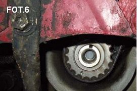 W zestawie rozrządu znajduje się też śruba (nr OE 8200557644) mocująca zębate koło pasowe do wału korbowego. Jest to bowiem element jednorazowego użytku. Dokręcenie tej śruby właściwym momentem obrotowym jest bardzo istotne. Wartość momentu różni się w zależności od kodu silnika i modelu samochodu, należy więc stosować się w tym zakresie do instrukcji serwisowej konkretnego pojazdu. Zlekceważenie powyższych zaleceń może doprowadzić do zerwania śruby (fot. 6).