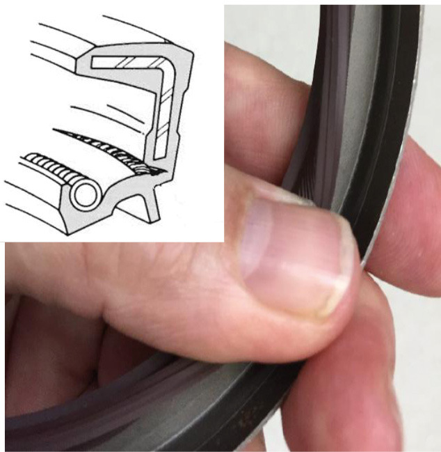 Nie należy ściskać ani skręcać wargi uszczelniacza w celu sprawdzenia jego jakości, bo prowadzi to do poważnego uszkodzenia struktury i pogłębiających się dziur na uszczelniaczu