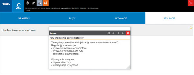 Fot. 4. Oprogramowanie IDC5 Texa wysterowanie serwomotorów mieszania powietrza układu klimatyzacji