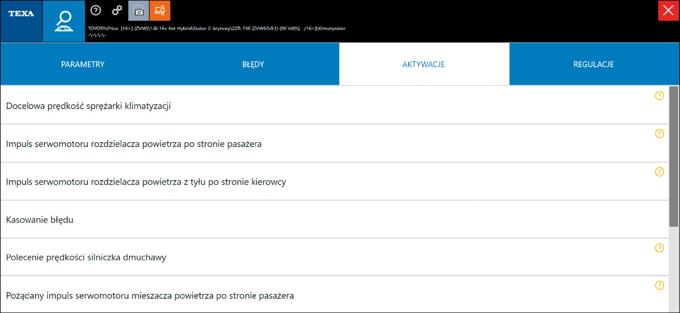 Fot. 5. Wybrane dostępne aktywacje w oprogramowaniu IDC5 CAR dla Toyoty Prius