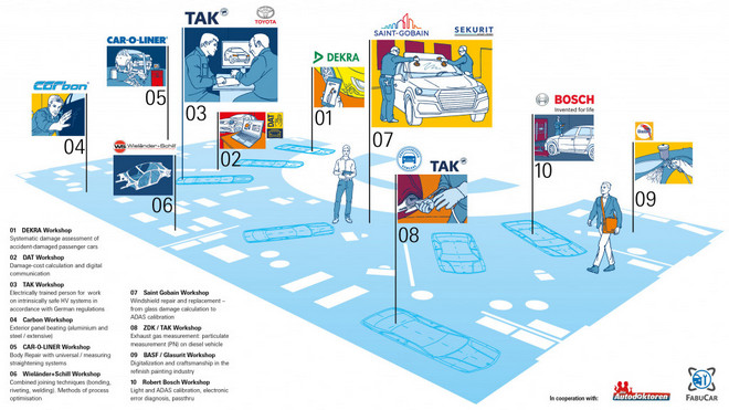 Podobnie jak dotychczas na targach odbędą się warsztaty praktyczne. Zaplanowano również kilka pokazów napraw powypadkowych na żywo, prowadzonych przez FabuCar i Car Doctors (Die Autodoktoren).