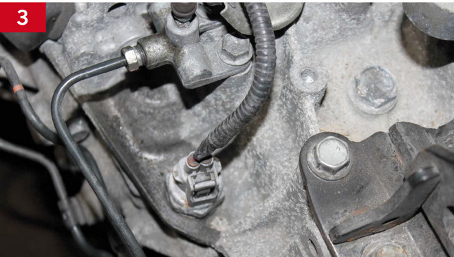 6. Wyjmij wtyczkę włącznika świateł cofania (fot. 3), zaciśnij elastyczną rurkę sprzęgła i odłącz przewód hydrauliczny sprzęgła od skrzyni biegów.