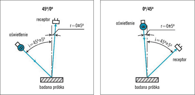 Kierunkowa geometria pomiarowa (0°/45° lub 45°/0°)