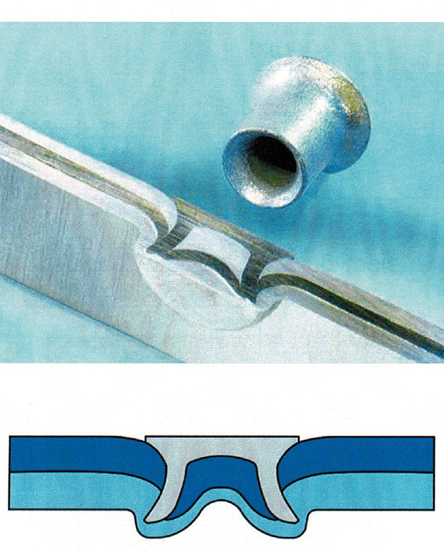 W niektórych przypadkach nitowanie uzupełniane jest klejeniem i powstaje połączenie hybrydowe o oczekiwanej wytrzymałości, ale i elastyczności (rys. 6). Elastyczność jest bardzo istotną właściwością, ponieważ pojazd podczas użytkowania podlega ogromnej ilości wstrząsów, przenoszonych zarówno przez zawieszenie układu jezdnego, jak i pochodzące z zespołów napędowych samochodu. Aktualnie klejenie stosowane jest najczęściej do mocowania dachu, wnęk wlewu paliwa lub jako dodatkowy element mocujący w połączeniach nitowanych. Kleje konstrukcyjne stosuje się również do mocowania elementów ozdobnych oraz wyposażenia pojazdu. Masy klejowe mogą być używane do klejenia, zabezpieczenia antykorozyjnego i uszczelnienia podczas jednego procesu. Stosując klejenie, możliwe jest zastąpienie spawania, czy też zgrzewania. Bardzo ważną zaletą jest łączenie ze sobą różnych materiałów: stali, aluminium, czy też tworzyw sztucznych. Pierwszym klejeniem, masowo stosowanym w produkcji pojazdów, było klejenie szyb. Połączenia klejone mają dodatkową cechę. Jest nią powstanie powłoki uszczelniającej i antykorozyjnej.