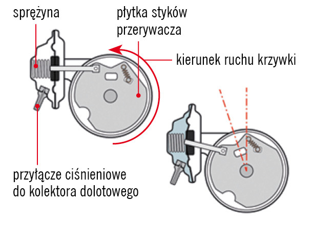 Rys. 4. Mechanizm mechanicznego przyspieszenia zapłonu związanego z prędkością obrotową silnika