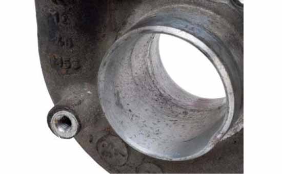 - Na skutek uszkodzenia łożyska wirniki turbiny i sprężarki mogą uderzyć w korpus turbosprężarki (fot. 1). Można to poznać po śladach tarcia pozostawionych na korpusie (fot. 2).