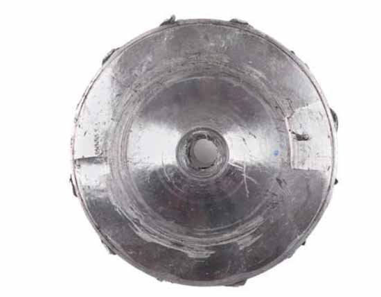 - Z tyłu wirnika sprężarki widoczne są niewielkie wgłębienia (fot. 19). Przy zbyt wysokiej prędkości obrotowej doszło do plastycznego odkształcenia materiału (typowe dla aluminium). Nastąpiło jego płynięcie wraz ze zwiększeniem średnicy zewnętrznej.