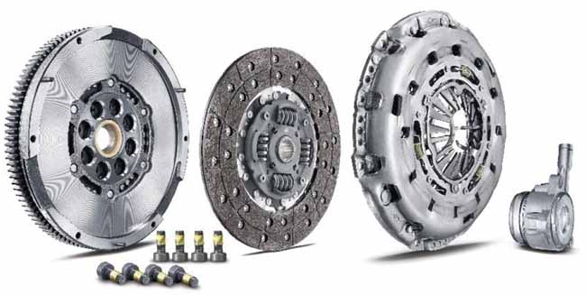 Zestaw LuK RepSet DMF zawiera: dwumasowe koło zamachowe, tarczę dociskową sprzęgła, tarczę sprzęgła, konwencjonalne łożysko oporowe lub wysprzęglik centralny oraz wszystkie niezbędne śruby montażowe
