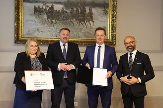 W uroczystości wręczenia pozytywnej decyzji o wsparciu dla firmy Polmotors uczestniczyli m.in.: Jarosław Klimaszewski – prezydent Bielska-Białej, Mateusz Trzop - dyrektor ds. inwestycji Polmotors, Lidia Kurczyk – koordynator ds. programów wsparcia w Polmotors oraz dr Janusz Michałek – prezes KSSE.