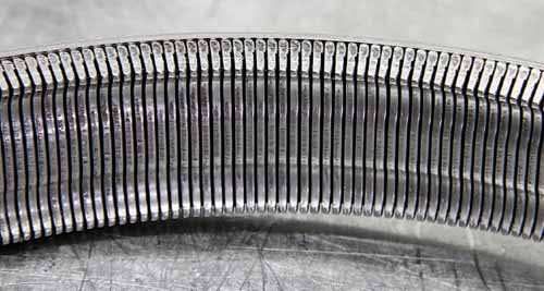 Nieszczelności obwodów hydraulicznych lub zatarcia i zużycia zaworów sterujących powodują spadki ciśnień i w konsekwencji – nieprawidłową pracę podzespołu lub wręcz jego poważne uszkodzenie. Dobrym przykładem jest bardzo popularna na naszym rynku bezstopniowa skrzynia biegów JF015E (RE0F011A) konstrukcji japońskiej firmy Jatco. Najczęściej spotyka się ją w wielu modelach Nissana, takich jak Juke lub Qashqai. Sercem tej skrzyni jest łopatkowa pompa oleju napędzana przez konwerter łańcuchem (fot. 1). O ile sekcja tłocząca jest wykonana solidnie i rzadko możemy spotkać się z jej uszkodzeniem, to zawór kontroli przepływu oleju czasem sprawia kłopoty. W trakcie pracy skrzyni wykonuje on ciągły ruch oscylacyjny i z biegiem czasu zaczyna nadmiernie zużywać kanał w pompie, doprowadzając do powstania rys i zadziorów (fot. 2). W początkowej fazie usterki jego ruch nie jest płynny lub płynność pracy spada wraz ze wzrostem temperatury ATF. Skrzynia pracuje wtedy gorzej, generowane są różne kody błędów (często nie wskazują one na związek usterki z pompą), czasem włącza się tryb awaryjny. Wyczuwalne są wibracje i drgania lub szarpnięcia przy zmianie przełożenia. Po jakimś czasie zawór klinuje się całkowicie, doprowadzając do poważnych uszkodzeń stożkowych bieżni wariatorów oraz pasa napędowego i tym samym – utraty napędu (fot. 3). Należy wspomnieć, iż katalizatorem takich uszkodzeń jest brak prawidłowej i regularnej obsługi skrzyni olejowej.