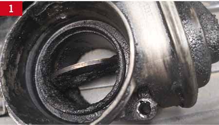 W przypadku sterowania podciśnieniowego spotykanego w starszych rozwiązaniach, np. w Volkswagenie Passacie 1.9 TDI z silnikiem AWX, najczęstszą przyczyną jest nieszczelność układu. Gdy podciśnienie „ucieknie” z układu, to siłownik pneumatyczny nie ma możliwości wysterowania talerzyka przepustnicy. Najprostszą czynnością diagnostyczną będzie ręczne domknięcie przepustnicy (fot. 4). Gdy niepokojące odgłosy znikną, należy naprawić układ podciśnieniowy obejmujący „gruszkę”, przewody i zworki, który stanowi najczęstszą przyczynę problemu.