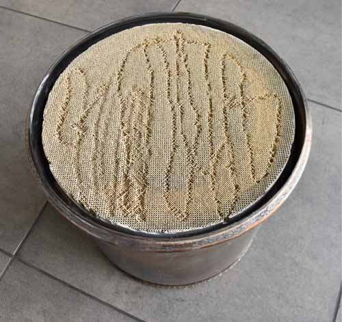 Zniszczony wkład filtra, prawdopodobnie przez próbę umycia myjką ciśnieniową
