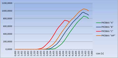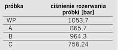 Ostatnim etapem badań próbek był test na rozrywanie pod wpływem ciśnienia. Osiągnięte podczas tej próby wartości korespondowały ze zbadanymi wcześniej parametrami.