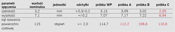 Tab. 2. Wyniki pomiarów spęczeń