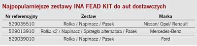Wraz z zestawem INA FEAD Kit, Schaeffler oferuje kompletne rozwiązania do napraw urządzeń pomocniczych w samochodach dostawczych. Głównymi elementami składowymi są zawsze: pasek klinowy lub wielkolinowy, rolki napinające i prowadzące oraz wszystkie niezbędne akcesoria.