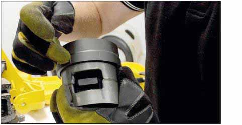 Wyrównujemy pozycję zaślepki w otworze oraz zabezpieczamy dodatkowo ściskiem – jest to bardzo istotne, aby nie uszkodzić nowo montowanej tulei.