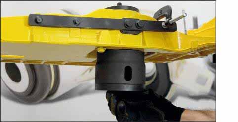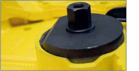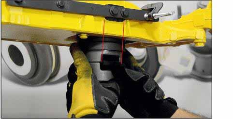 Nakładamy mniejszą kształtkę do wyprasowania zużytych tulei oraz nakrętkę. Wcięcie powinno znaleźć się w pozycji skierowanej do tylnej części pojazdu.
