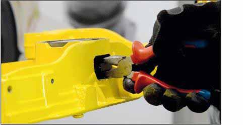 Po wprasowaniu tulei demontujemy ściągacz oraz wyciągamy szczypcami kształtkę utrzymującą obydwie tuleje w osi.