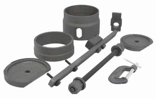 Umożliwia on prawidłowy demontaż i montaż tulei bezpośrednio na samochodzie, bez konieczności usunięcia kołyski silnika. Dzięki zastosowaniu wysokiej jakości materiałów ściągacz charakteryzuje się wysoką wytrzymałością. Aby ułatwić pracę i zapewnić prawidłową eksploatację, należy przed każdym użyciem nasmarować śrubę oraz łożyska.