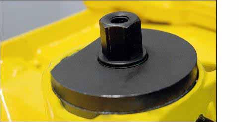 Od dołu kołyski silnika montujemy większą tuleję prowadzącą oraz większą kształtkę wraz ze śrubą.