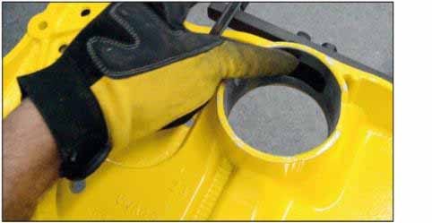 Wyprasowujemy zużyte tuleje. Po usunięciu tulei należy dokładnie oczyścić gniazdo.