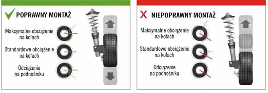 Po zamontowaniu kolumny amortyzatora należy pamiętać, aby końcowe dokręcanie górnego zestawu montażowego do nadwozia czy dokręcanie tulei metalowo-gumowych zawieszenia oraz tulei mocujących amortyzator przeprowadzać odpowiednią wartością momentu siły w pozycji, gdy zawieszenie dociążone jest masą pojazdu (gdy auto stoi na kołach).