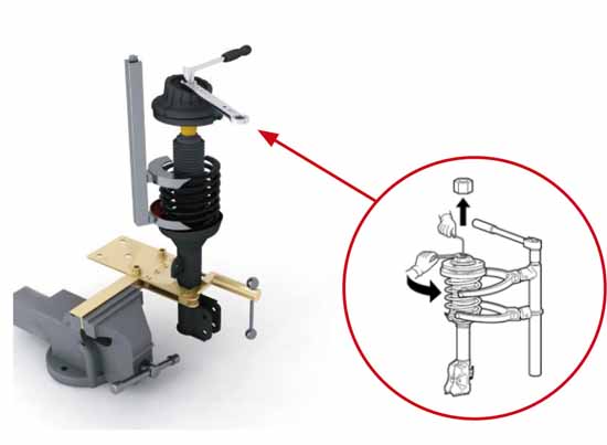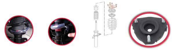 Należy także sprawdzić poprawność ułożenia sprężyny zawieszenia w dolnym talerzu oporowym amortyzatora oraz prawidłowo ustawić pozycję górnego zestawu montażowego (jeżeli tego wymaga).