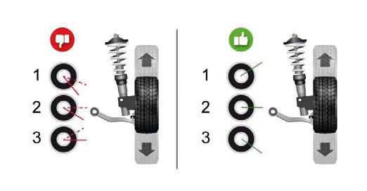 Po obniżeniu zawieszenia należy dokonać kontroli oraz korekty geometrii kół auta. Warto również rozkręcić oraz ponownie skręcić mocowanie tulei łączących poszczególne elementy zawieszenia, aby uniknąć ich naprężenia podczas pracy, co skraca ich żywotność. Zachowanie zawieszenia z „napiętymi” tulejami przedstawia zamieszczona obok ilustracja.