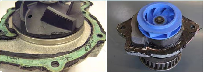 W pompach cieczy chłodzącej wyposażonych w uszczelkę lub O-ring zazwyczaj nie używa się żadnej dodatkowej substancji uszczelniającej, np. silikonu (o ile instrukcja montażowa nie mówi inaczej). Niezmiernie ważne jest natomiast prawidłowe oczyszczenie miejsc przylegania nowej pompy. W większości przypadków trzeba w tym celu wcześniej spuścić płyn chłodniczy (cały lub przynajmniej poniżej poziomu pompy).