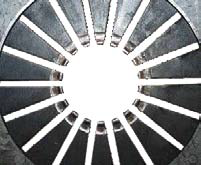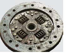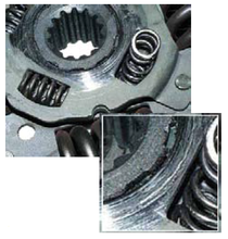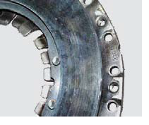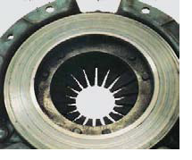 Kontrola docisku sprzęgła powinna określić, czy nie uległ on przegrzaniu (niebieskie przebarwienia), nie ma zarysowań, a sprężyna talerzowa nie jest pęknięta.